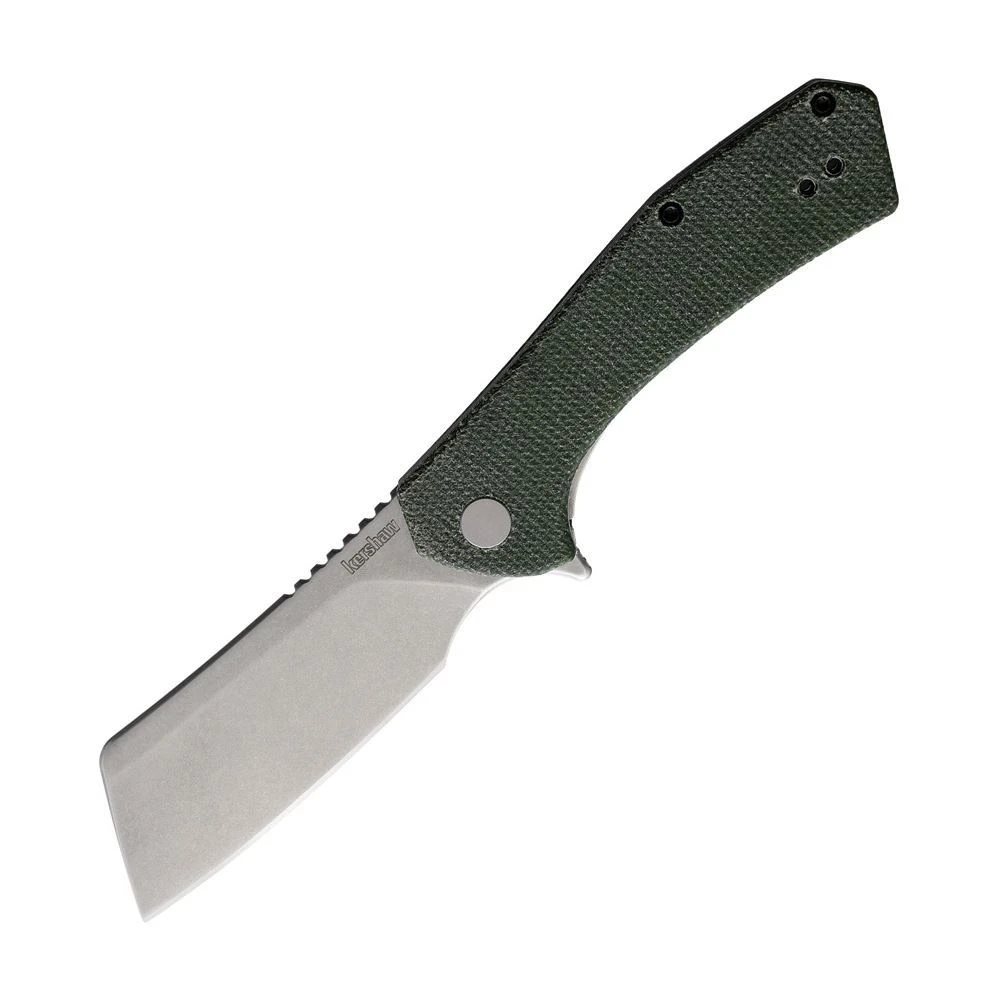 Model – KS3445MCG. Kershaw Static Framelock Green D2. 4″ (10.16cm) closed. 3″ (7.62cm) stonewash finish D2 tool steel blade. Green micarta handle. Extended tang. Pocket clip. Boxed.