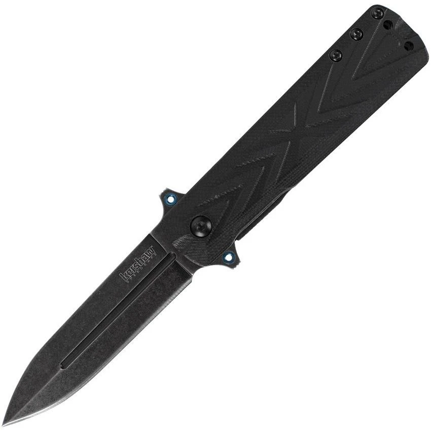 Model – KS3960. Kershaw 3960 – Barstow Assisted Opening Assisted Opening Spear Point Linerlock Folding Pocket Knife. Assisted opening. 4″ closed. 3″ 8Cr13MoV stainless spear point blade. Black GRN handle. Extended tang. Pocket clip. Black oxide BlackWash finish blade. Boxed. Made in China.